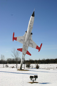 Dedicated in 1995, by the RCAF Memorial Museum, which is located nearby at CFB Trenton. The aircraft is a sleek CF-116A/F5 Freedom Fighter. A beautiful piece of equipment, almost like a sculpture against the blue skies.